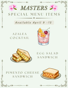 Watch the Masters and enjoy our Special Masters’ Menu