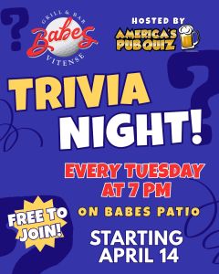 Join us Tuesday Nights and find out how much you know about anything!