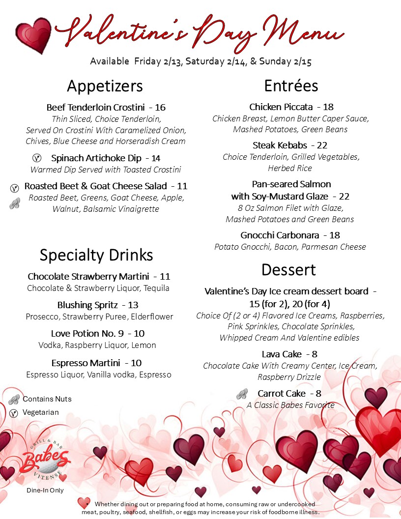 Join us for 3 DAYS of a SPECIAL MENU to help you Celebrate your Favorite Valentine!
